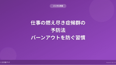 メンタル改善 仕事の燃え尽き症候群の予防法|バーンアウトを防ぐ習慣 燃え尽き症候群のサイン 感情的に消耗している、仕事に対して冷めている、成果を感じられない|人生改善ラボ 2026.04.02 メンタル改善