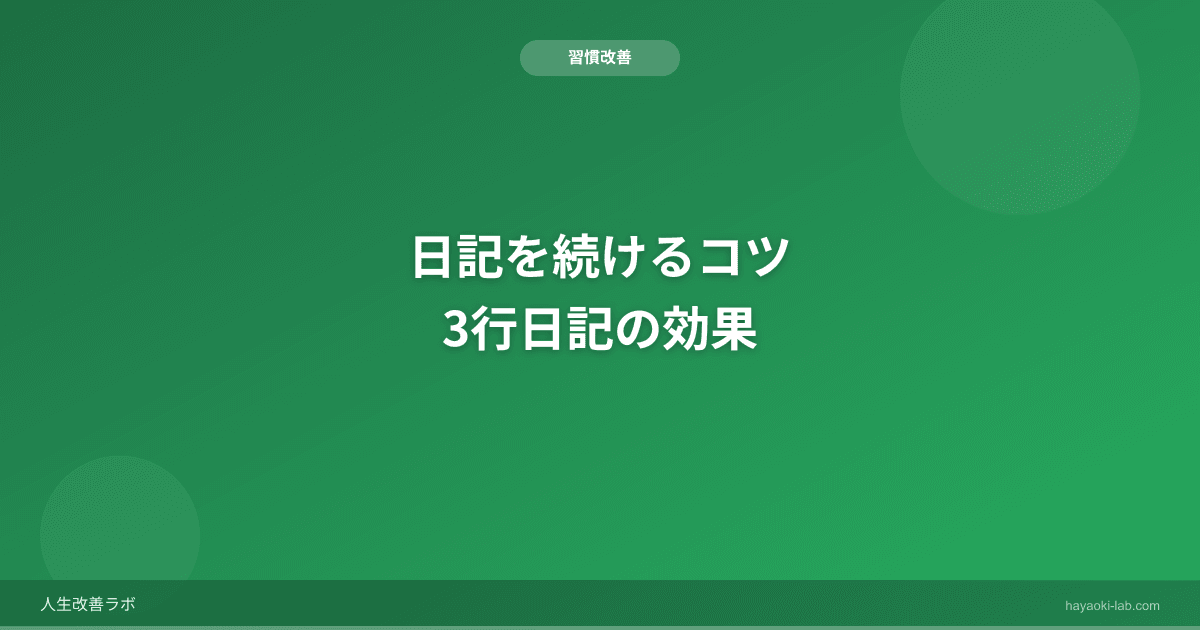 「3行日記」なら、たった3行で1日を記録できます。1分で書けて、続けるほど効果が出る。この記事では、3行日記の書き方と、続けることで得られる効果を紹介します。