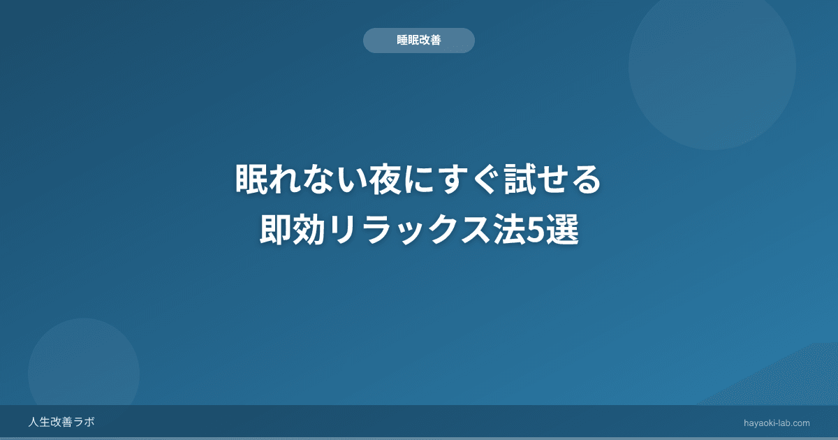 眠れない夜に焦ってしまうと、かえって目が冴えてしまう悪循環に陥ります。大切なのは「眠ろう」と頑張るのではなく、体と脳のリラックスを助けてあげることです。