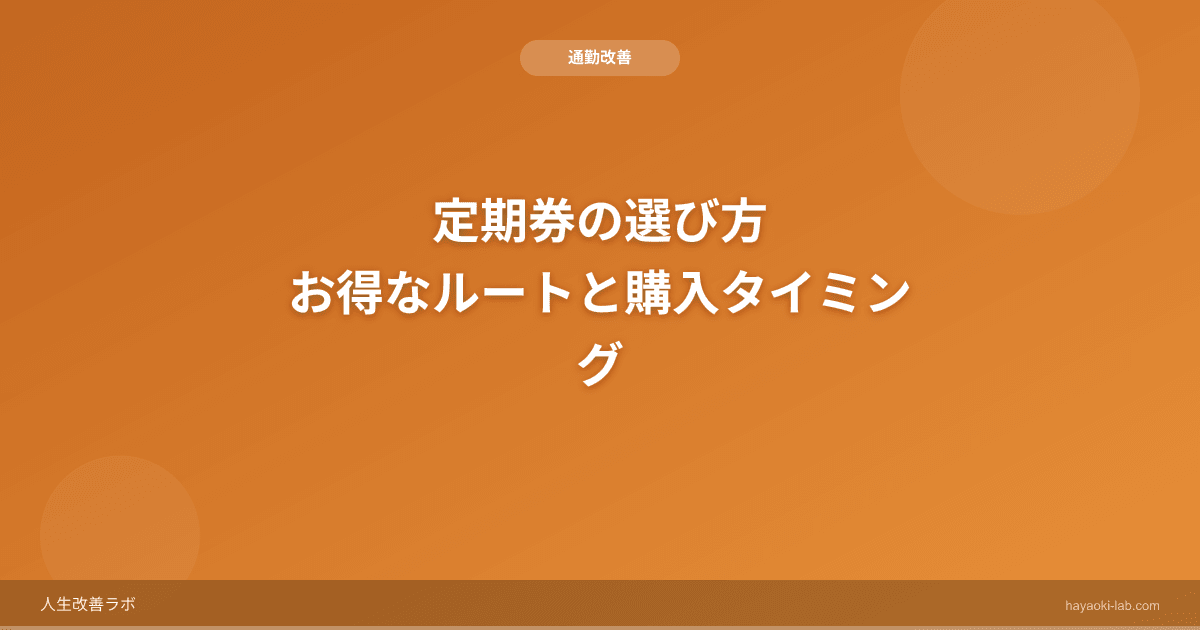 定期券の選び方を見直すだけで、年間数万円の節約ができる可能性があります。ルートの比較、6ヶ月定期の活用、モバイル定期券への切り替えなど、次の更新時にぜひ検討してみてください。小さな見直しが、大きな節約につながります。