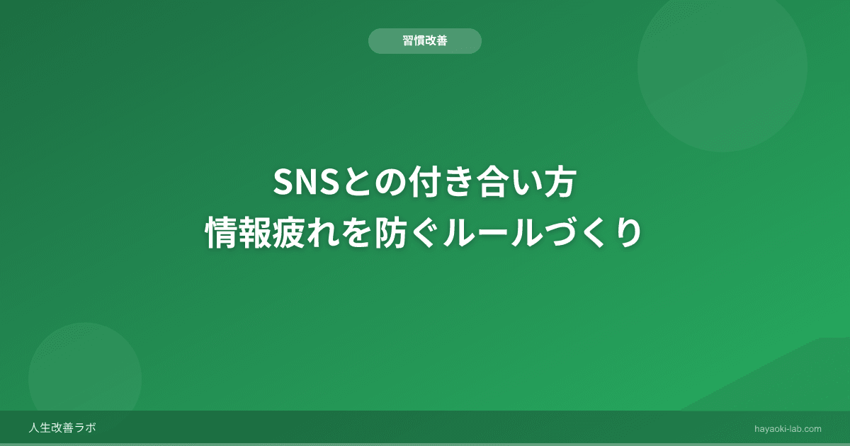 SNSは便利なツールですが、際限なく流れてくる情報は脳に大きな負荷をかけます。比較による劣等感、ネガティブニュースによる不安、通知に振り回される生活。こうした問題に対処するには、自分なりの「SNSルール」が必要です。
