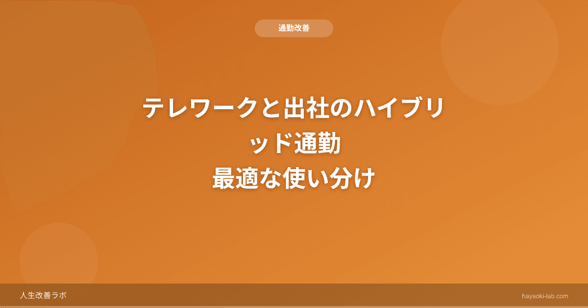 ハイブリッド勤務を効果的に使うには、出社日とテレワーク日それぞれに明確な目的を持たせることが大切です。出社日は対面の価値を最大化し、テレワーク日は集中力を活かす。曜日を固定してリズムを作り、浮いた時間を意図的に活用する。これらを意識するだけで、ハイブリッド勤務の満足度は大きく変わるはずです。