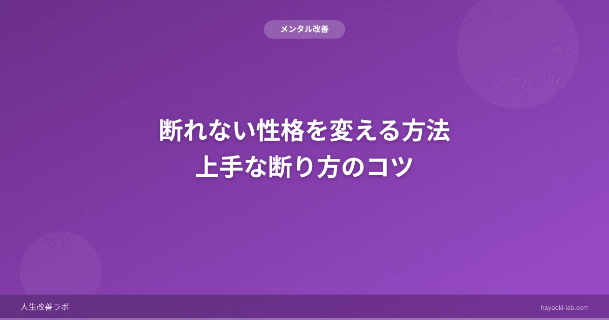 頼まれると断れない、嫌なのに引き受けてしまう——断れない性格は優しさの裏返しですが、自分を追い詰める原因にもなります。上手な断り方を身につけましょう。