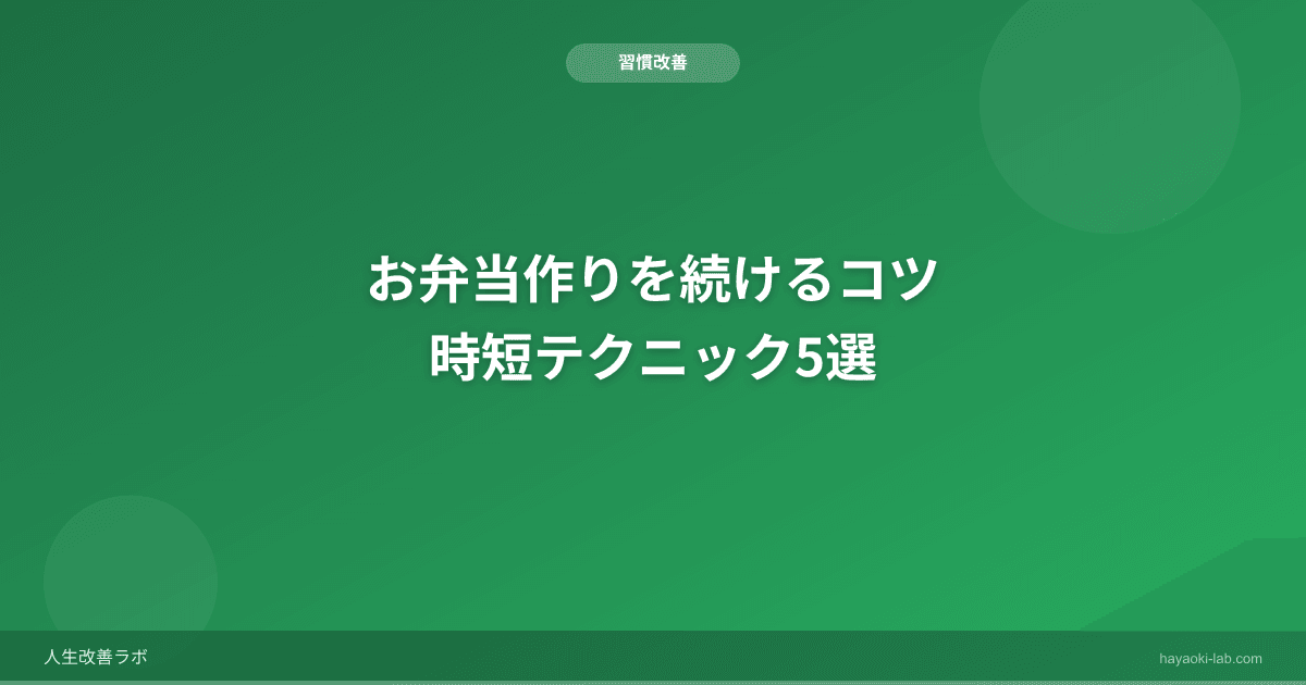 「節約と健康のためにお弁当を作ろう」と決意しても、3日坊主で終わる人は多いです。毎朝の早起き、献立を考える手間、調理の時間…。お弁当作りが続かない原因は、「完璧なお弁当」を目指してしまうことにあります。