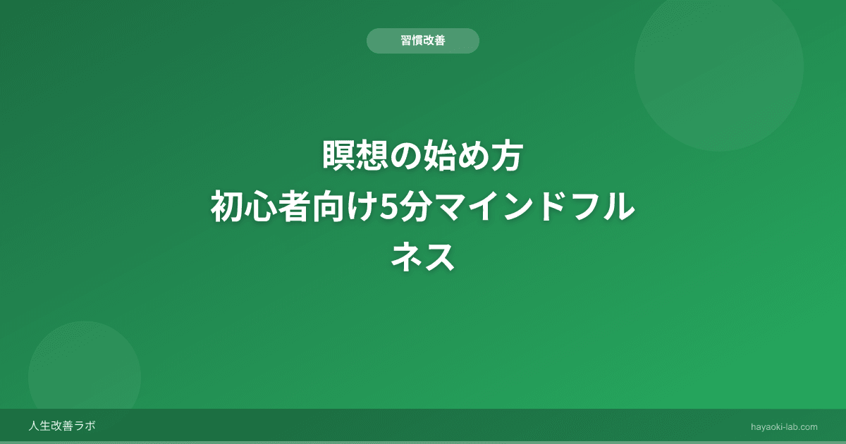 しかし、瞑想(マインドフルネス)は特別なものではなく、忙しい社会人のストレス管理や集中力向上に役立つ実用的な習慣です。この記事では、初心者でも今日から始められる5分間の瞑想方法を紹介します。