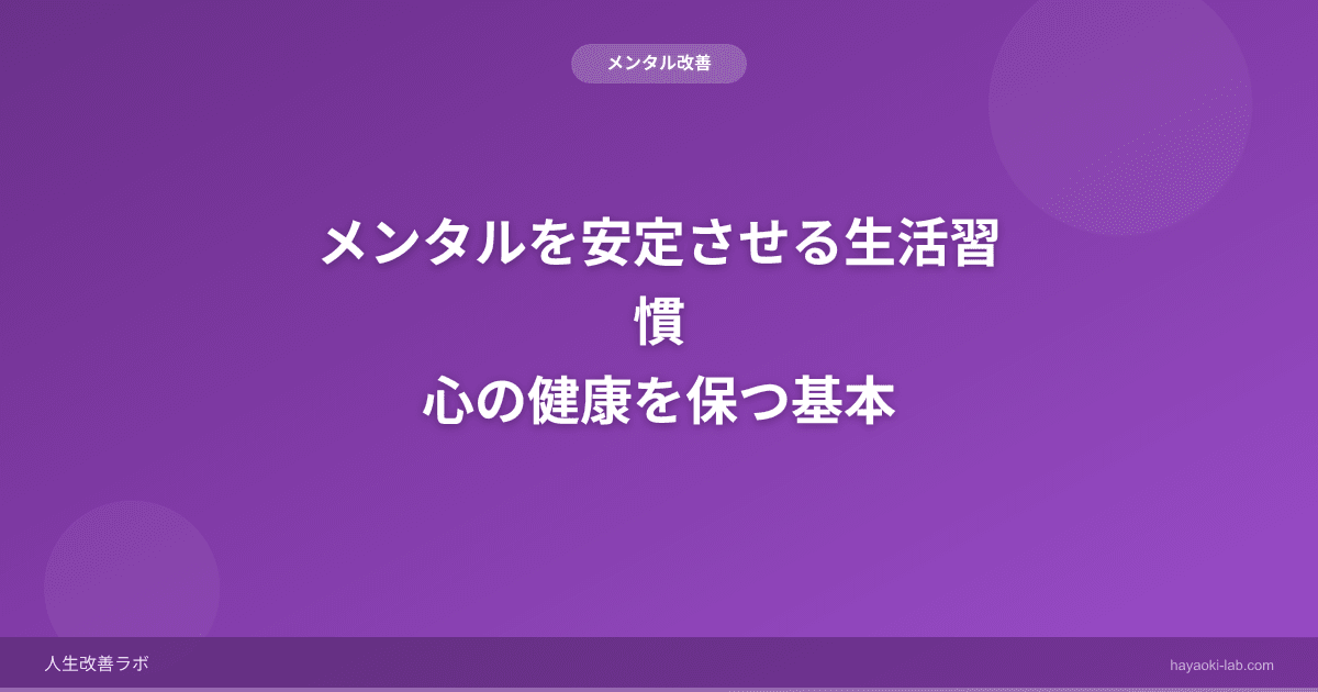 メンタルを安定させる生活習慣|心の健康を保つ基本