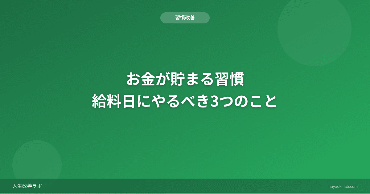 お金が貯まるかどうかは、給料日の行動で決まります。先取り貯金、固定費の確認、月間予算の設定。この3つを給料日のルーティンにするだけで、お金の流れが劇的に変わります。次の給料日から、ぜひ実践してみてください。