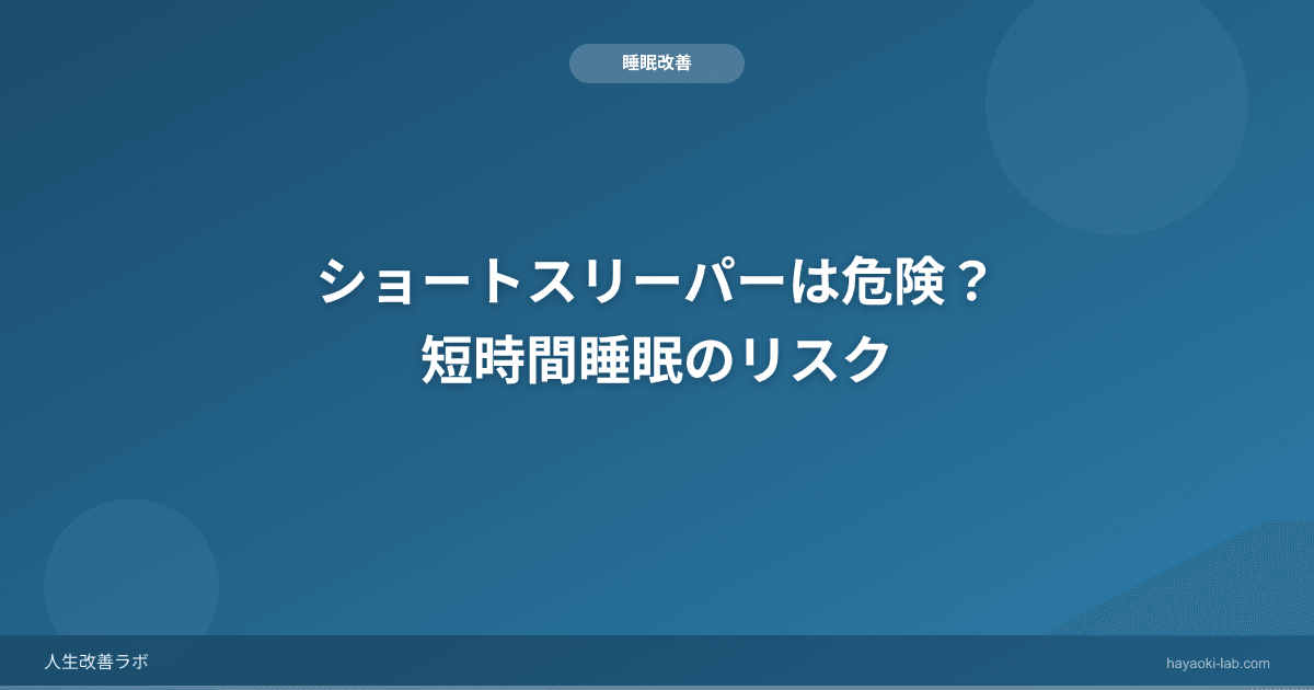 ショートスリーパーは遺伝的にごくわずかな人にしか当てはまりません。短時間睡眠を続けることは、集中力の低下、免疫力の低下、生活習慣病のリスクなど、多くの問題を引き起こす可能性があります。