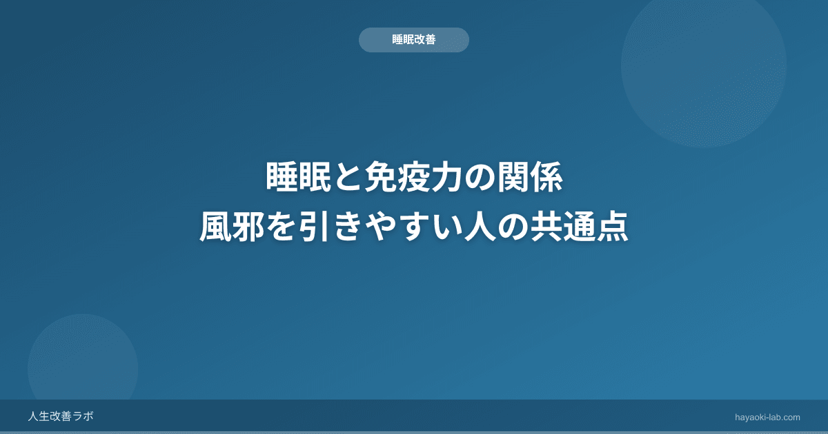 睡眠は最強の免疫ブースターです。風邪を引きやすいと感じたら、まず睡眠時間と質を見直してみてください。薬やサプリメントに頼る前に、毎日の眠りを改善することが、最もシンプルで効果的な免疫力アップの方法です。