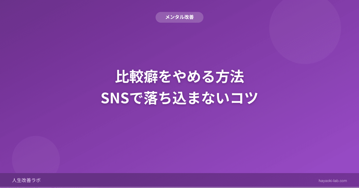 SNSを見るたびに「あの人はうまくいっている」「自分は何もできていない」と比較してしまう。比較は人間の自然な傾向ですが、度が過ぎるとメンタルに悪影響を及ぼします。