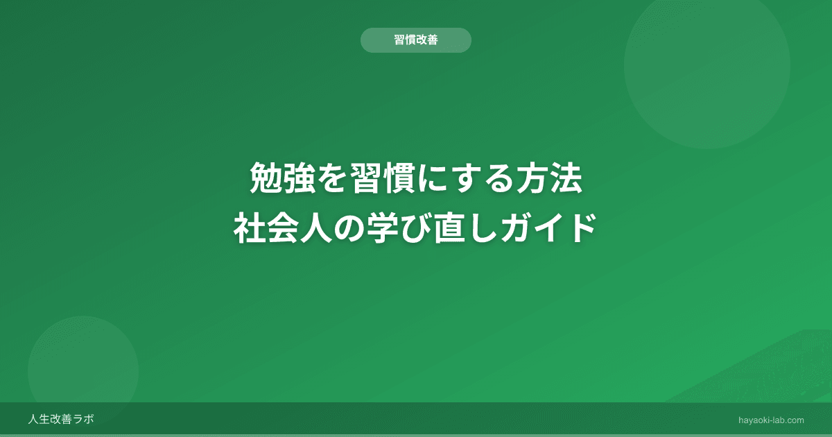 社会人の勉強は「いかに続けるか」がすべてです。最初は1日5分から、既存の習慣に組み込む形でスタートしましょう。小さな積み重ねが、半年後、1年後に大きな差を生みます。学び続ける社会人は、キャリアでも人生でも、確実に前進しています。