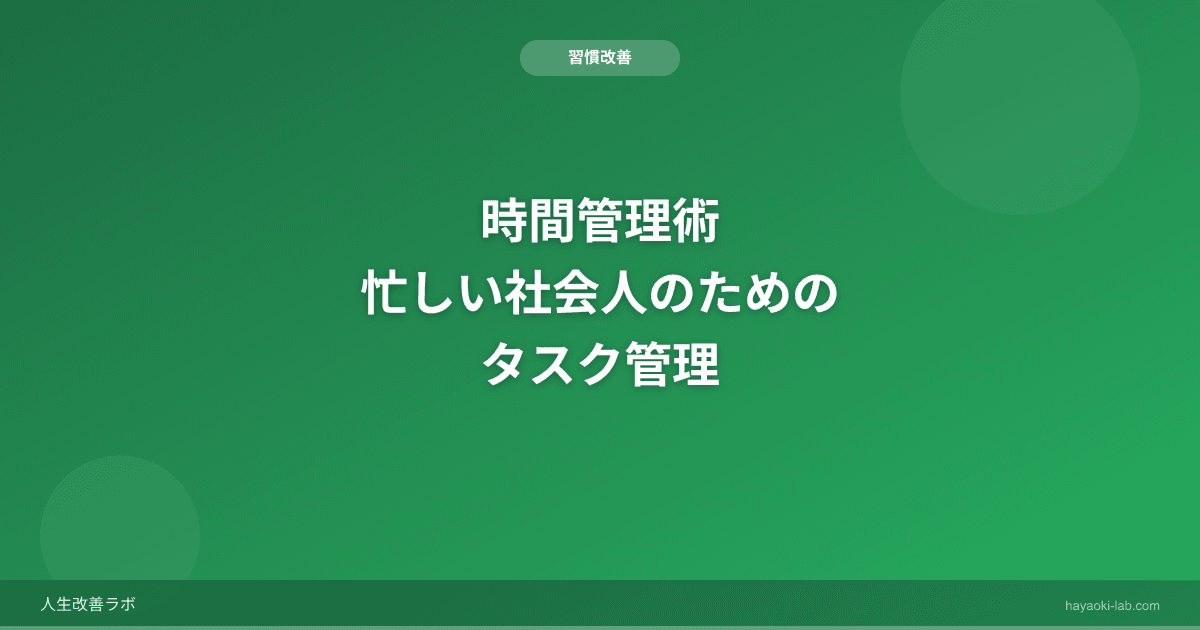 問題は時間が足りないことではなく、時間の使い方にあります。シンプルな時間管理術を取り入れるだけで、同じ24時間でも成果が大きく変わります。