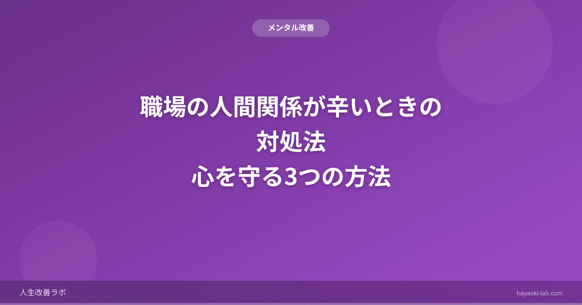 職場の人間関係が辛い——これは転職理由の上位に常にランクインする悩みです。逃げることも選択肢ですが、まずは心を守る方法を知っておきましょう。